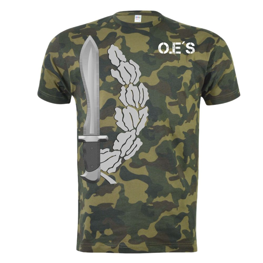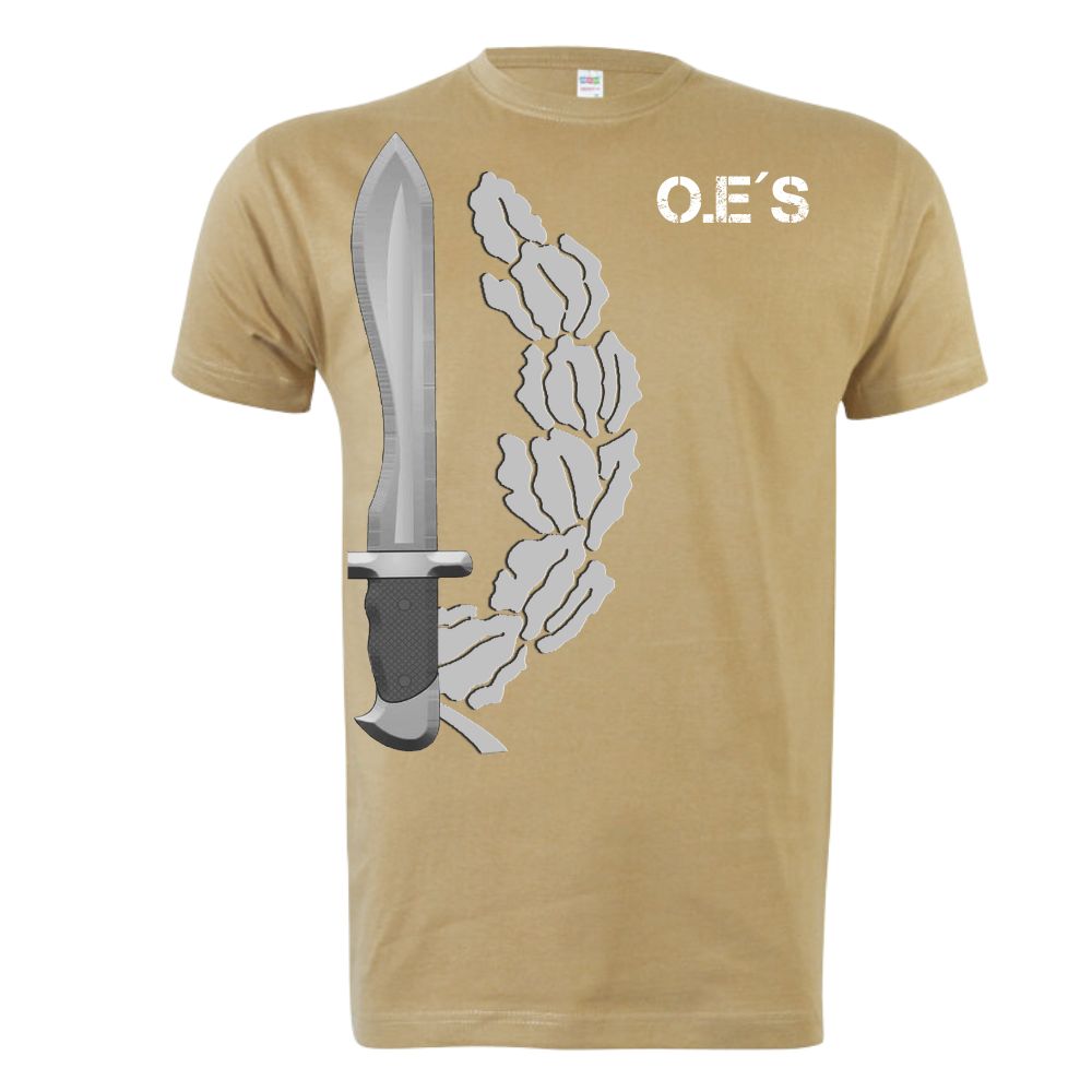 Camiseta manga corta, 100% algodón y cuello lycra con tema escudo de OE´s medio roble. Esta camiseta representa todas las fuerzas de operaciones especiales de nuestro ejército.