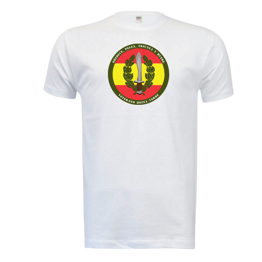 Camiseta OBEDECE BANDERA VERDE con ESCUDO OPERACIONES ESPECIALES y lema ‘Obedece, Pelea, Triunfa y Muere’. Ideal para veteranos.