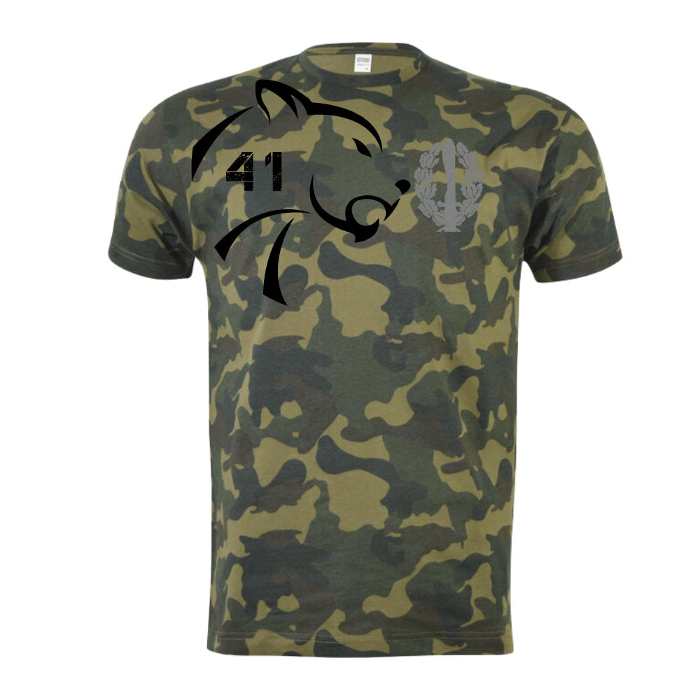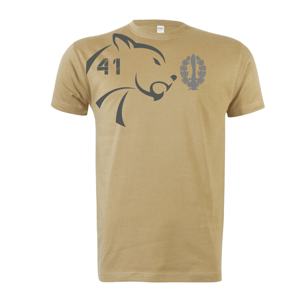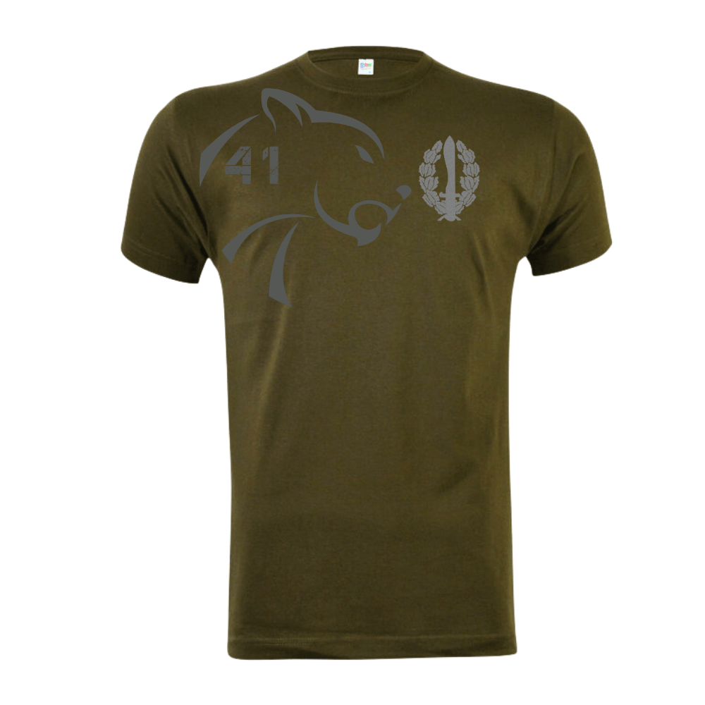 Camiseta manga corta, 100% algodón y cuello licra con tema de la COE 41. Esta camiseta es un homenaje a nuestra querida COE 41 y a todos los que tuvieron el privilegio de servir en esta unidad.