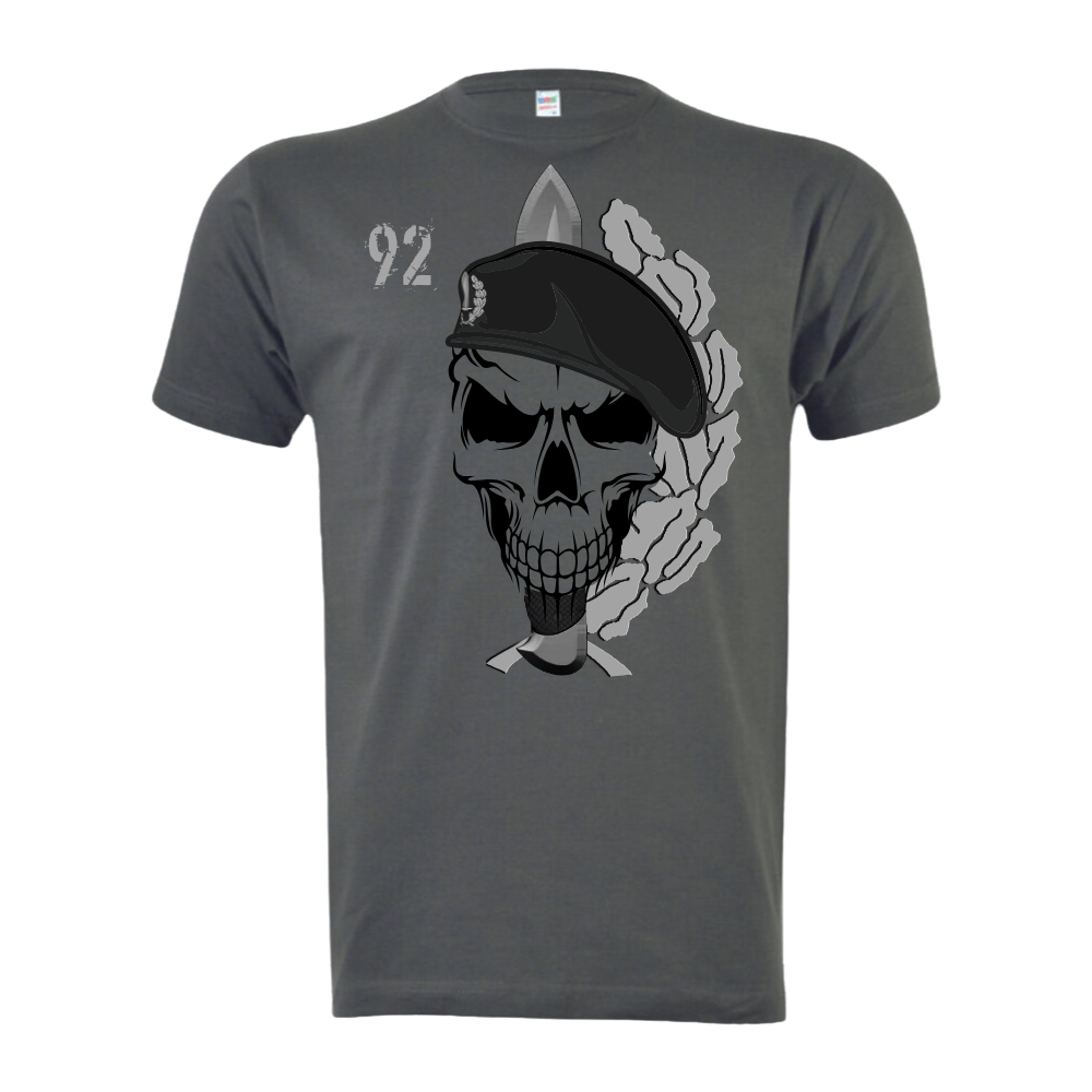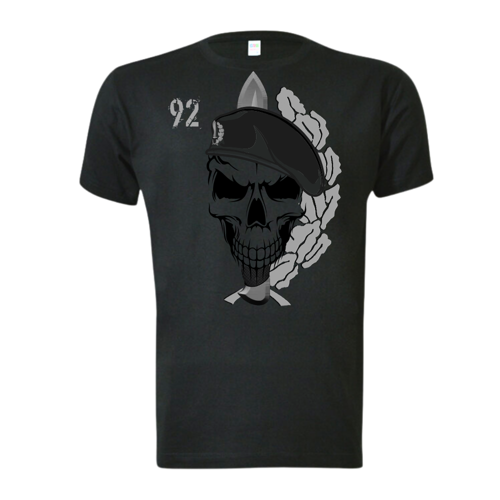 Nota aclaratoria: La 92 tuvo durante un tiempo en su escudo una calavera con boina, por eso veréis que hay dos diseños de camisetas