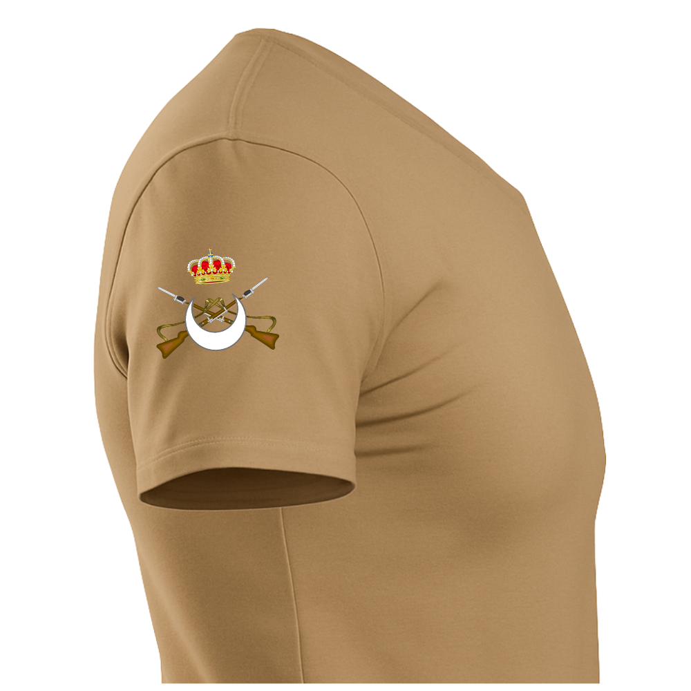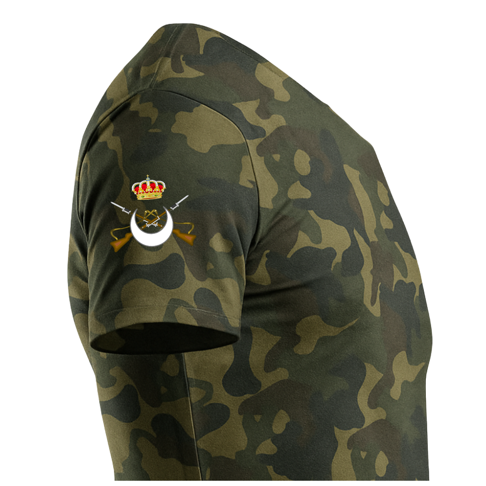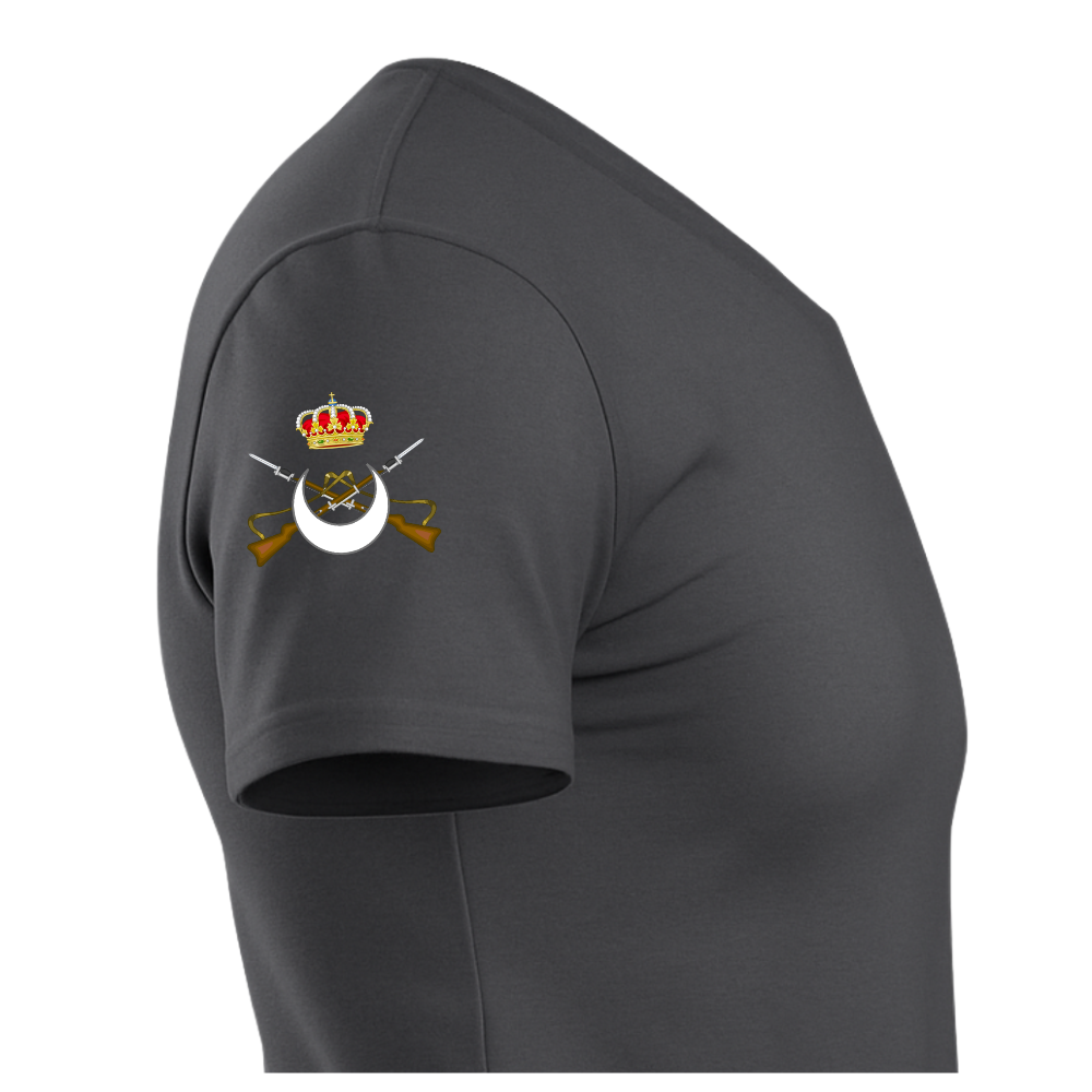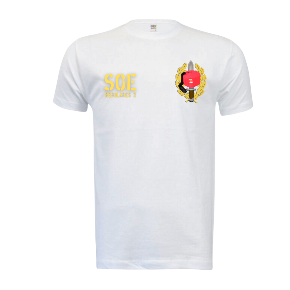 Camiseta manga corta, 100% algodón y cuello licra con tema ESCUDO DE SOE REGULARES Nº3 DE CEUTA. Un homenaje a esa sección de operaciones especiales.
